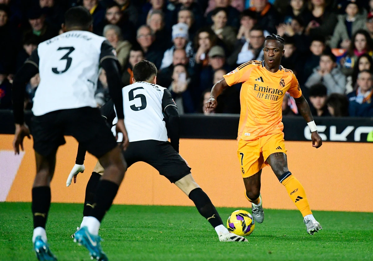 El arbitraje fue una completa persecución desde el primer minuto. Empezando por el gol valencianista, que nunca debió haber subido al marcador ya que vino precedido de una falta a Rodrygo en el inicio de la jugada, hasta la no repetición del penalti fallado por Bellingham, pasando por la injusta expulsión de Vinicius o el penalti que escamotearon al Real Madrid por derribo de Tárrega a Vinicius, entre otras cosas.