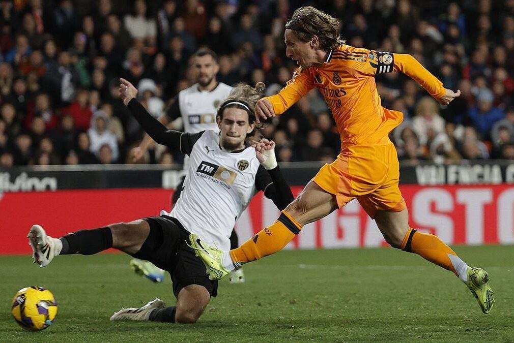 El Real Madrid ha ganado en el siempre dificil campo de Mestalla a un correoso Valencia tras una nueva remontada épica, con 10 y ante un arbitraje de lo más canallesco y atrabiliario que recuerdo en muchos años (y mira que los ha habido malos en esta Liga), en partido aplazado por la Dana que asoló parte del territorio valenciano.