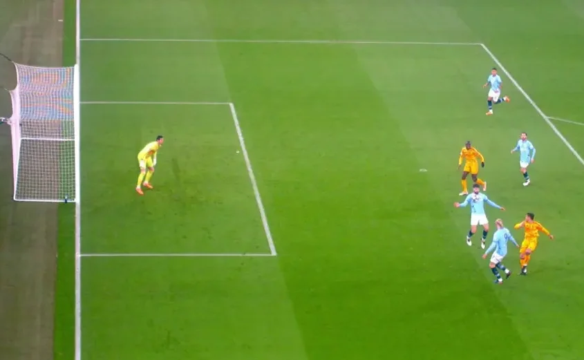 A los nueve minutos llegó la primera jugada polémica de la noche cuando Valverde le puso a  Vinicius un espectacular balón al espacio, lejos de la defensa citizen. El brasileño se fue por velocidad y se plantó ante Ederson, que le derribó claramente. Era penalti pero el coleigado francés Turpin decretó fuera de juego en el arranque del brasileño, por más que nadie pudo ver ni la jugada repetida ni tampoco los «monigotes» del Fuera de Juego Semiautomático, que en esta ocasión apenas tardó en resolver sobre la jugada.