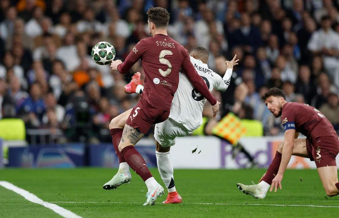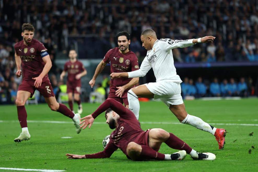 El partido no pudo empezar mejor para los de Carletto porque a los cuatro minutos, Asencio vio el desmarque de Mbappé ante una defensa adelantadísima y le puso un balón de más de 40 metros casi desde su portería que, evidentemente, el francés no desaprovechó. Ganó por velocidad a Stones y a Rubén Dias y, con un sutil remate picado por encima de Ederson, abrió la lata con total comodidad.