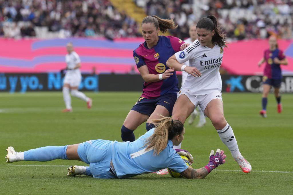Con el partido igualado y con Olga en el campo, que entró en el ’70 por Feller, el Real Madrid comenzó a desplegarse en ataque y sorprendiendo en varias ocasiones a la espalda de la defensa del Barça. Además, la intensidad madridista, lejos de venirse abajo tras el empate y la acumulación de minutos, siguió firme lo que empezó a generar la desesperación de las culés.