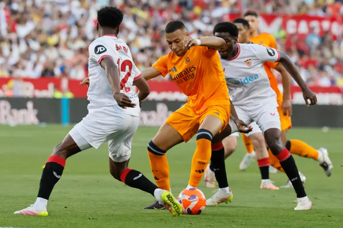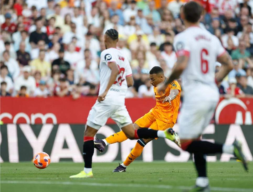 El Real Madrid se ha impuesto a domicilio al Sevilla por 0-2 en el Sánchez Pizjuán, en la última salida de esta temporada gracias a los goles de Mbappé, que sigue firme en su lucha por el Pichcihi y la Bota de Oro europea, y Bellingham, en un partido marcado por las dos expulsiones sufridas por el conjunto hispalense.