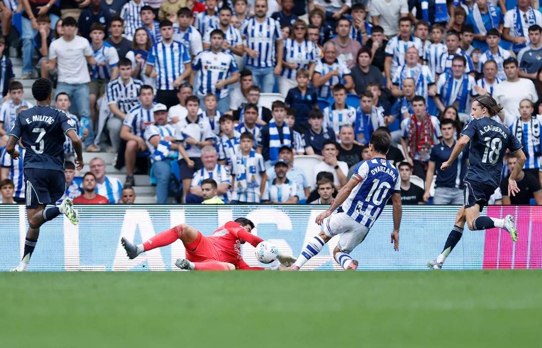 Con el Real Madrid encerrado a cal y canto y, a pesar de que Mbappé dio un susto por partido doble a la parroquia local, tras una gran galopada a la contra en el ’60, las mejores ocasiones cayeron del lado de la Real.