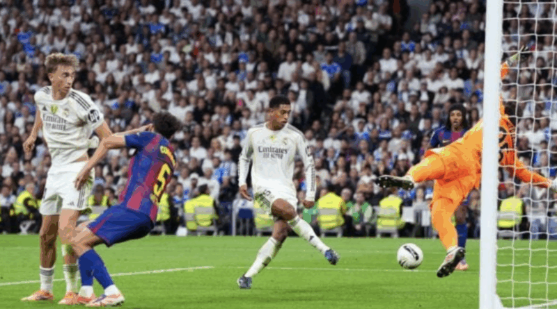 Los blancos, a diferencia de los Clásicos de la pasada temporada, salieron con los ojos inyectados en sangre y dispuestos a comerse al Barça. Presión adelantada y mucha intensidad y cuando el partido apenas llevaba un minuto de juego, cuando Vinicius se disponía a disparar dentro del área, Lamine Yamal se tiró al suelo detrás del brasileño, al que derribó claramente.