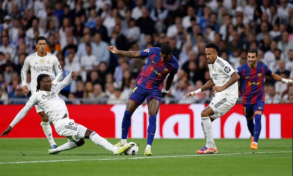 Este fallo provocó una contra del Barça por parte de Fermín, en una de lsa escasísimas ocasiones en las que los de Flick (hoy desde uno de los palcos debido a su sanción) lograron sorprender al Real Madrid. Pero el canterano culé no estuvo fino y culminó muy mal la ocasión, disparando flojo a las manos de Courtois desde la frontal, cuando tenía solos a Rashford y Ferrán por las bandas.