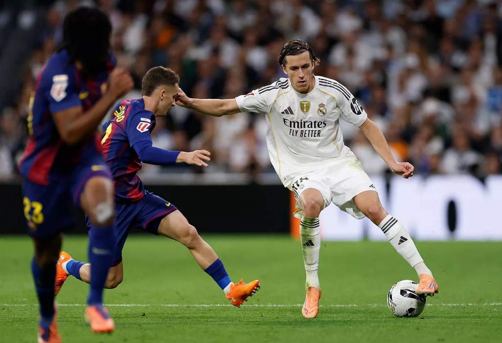 Un fallo bastante absurdo de Güler, que se durmió en la frontal ante Rashford, permitió que el británico, muy habilidoso, se internase en el área madridista y, viendo la llegada de Fermín desde segunda línea, habilitase al canterano barcelonista para que éste remachase de primeras sobre la meta de Courtois, que nada pudo hacer para evitar el tanto.