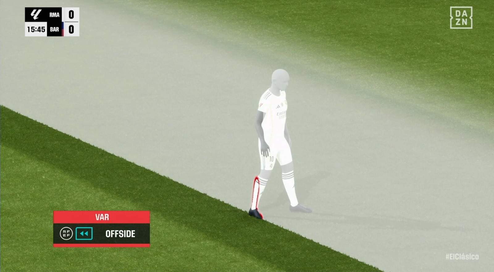 Sin embargo y, de forma sorprendente, de nuevo Iglesias Villanueva avisó a Soto Grado desde la Sala VOR para indicar que el francés estaba ligerísimamente adelantado en el momento de recibir el pase. Pase que, para más «inri», venía de un toque del jugador culé y no de Güler. El caso es que llevábamos algo más de 10 minutos y el Barça ya había sido salvado dos veces por la campana.