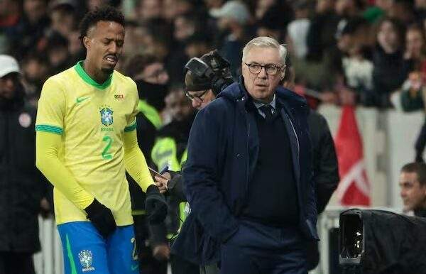 Según ha informado el club en su parte médico, Militao sufre «una lesión en el aductor mayor de su pierna derecha», producida durante el partido amistoso de este martes entre Brasil y Túnez.
