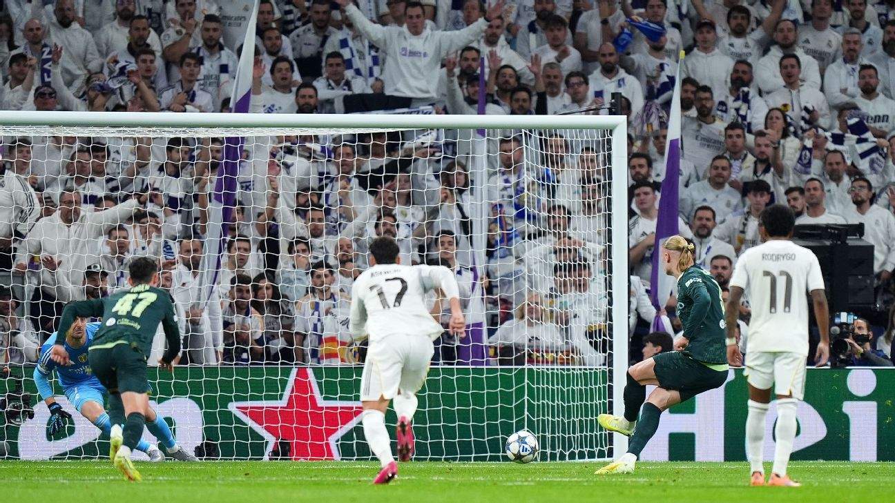 O’Reilly puso un buen servicio sobre el punto de penalti hacia Haaland en una jugada aparentemente sin peligro. Entonces Rüdiger no tuvo mejor ocurrencia que agarrar al noruego para zarandearle y acabar derribándole. Inicialmente, Turpin dejó seguir pero instantes después, el VAR le instó a revisar la jugada en el monitor y tras unos segundos, decretó penalti que el propio Haaland se encargó de transformar.