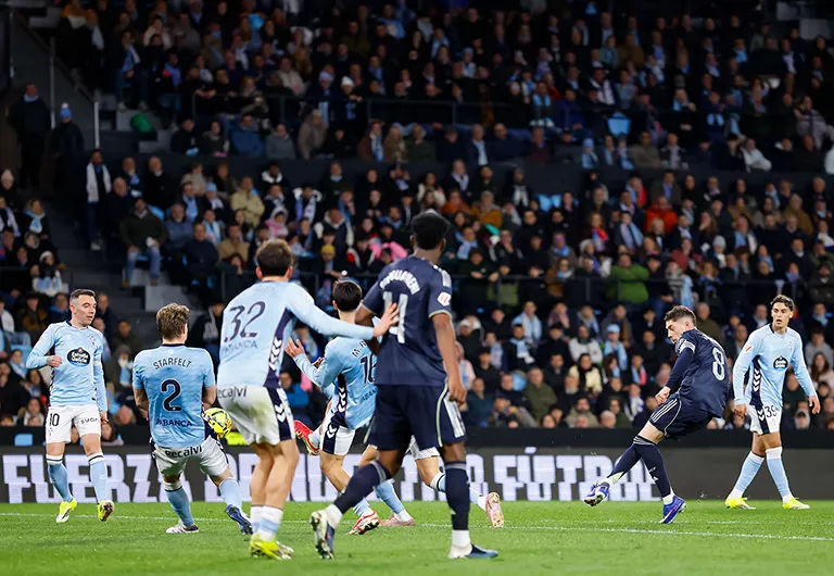 El Real Madrid ha logrado una importantísima victoria ante el Celta de Vigo en Balaídos que le permite seguir la estela del Barça en la lucha por el título de Liga, gracias a un gol de Fede Valverde en la última jugada del partido, tras un gran dominio, especialmente en la segunda parte.