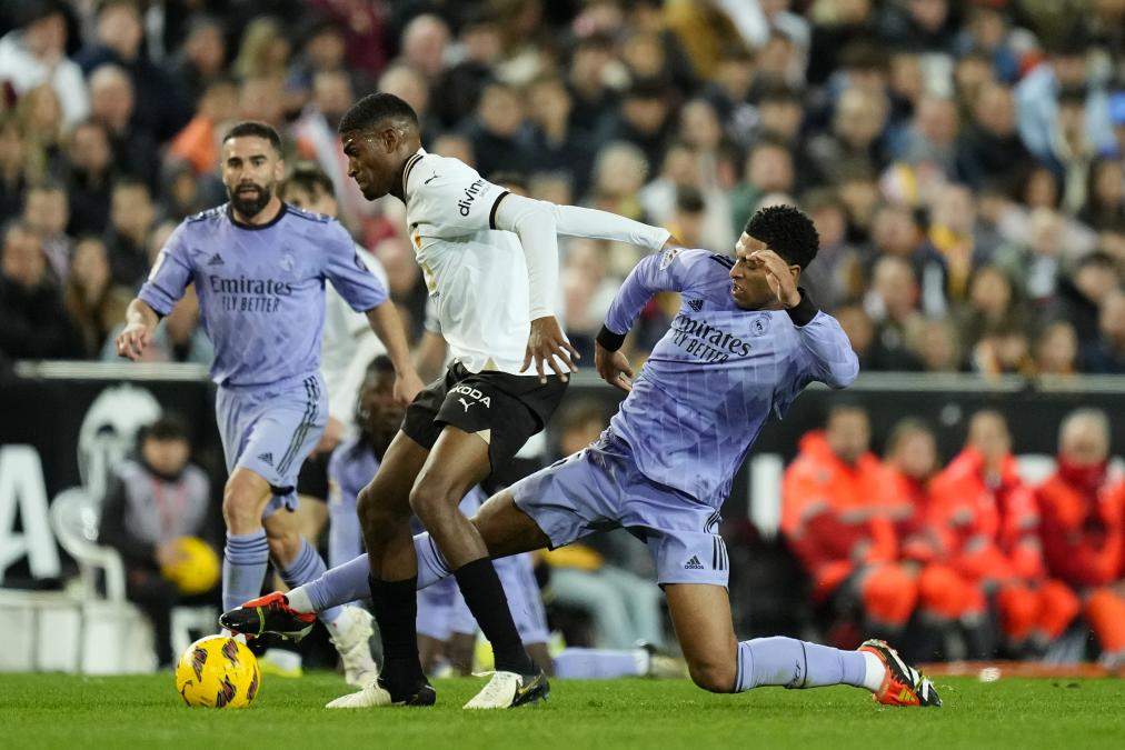 Y es que el Real Madrid salió a tocar y dominar la pelota para sortear la aguerrida y exagerada presión adelantada del Valencia para evitar su salida cómoda del balón. Y lo estaban consiguiendo, gracias a un toque casi exquisito por parte de casi todos, especialmente de un inspiradísimo Tchouameni, quien volvió a ocupar la demarcación de central en detrimento de Nacho.