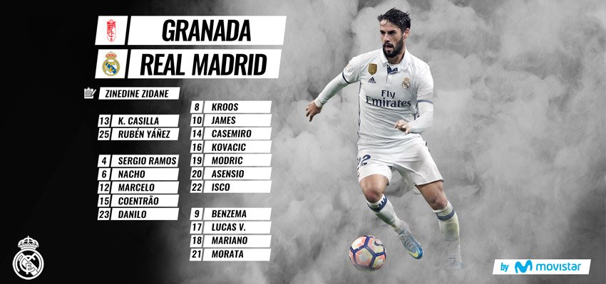 El entrenador del Real Madrid, Zinedine Zidane ha convocado a 18 jugadores para enfrentarse al Granada en la jornada 36 de la Liga Santander, en el...