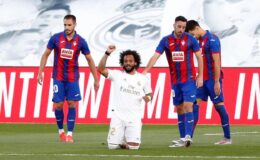[caption id="attachment_21312" align="aligncenter" width="1248"] Marcelo, rodilla en tierra, celebra su gol, el tercero de la tarde | Real Madrid 3-1 Eibar[/caption] Real Madrid 3-1...