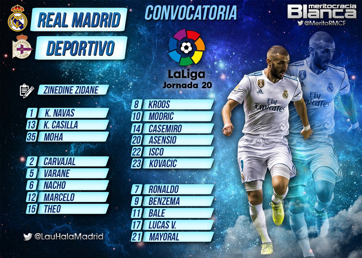 El entrenador del Real Madrid: Zinedine Zidane, ya ha dado la convocatoria Real Madrid-Deportivo de la Coruña, en la que ha convocado a 19...