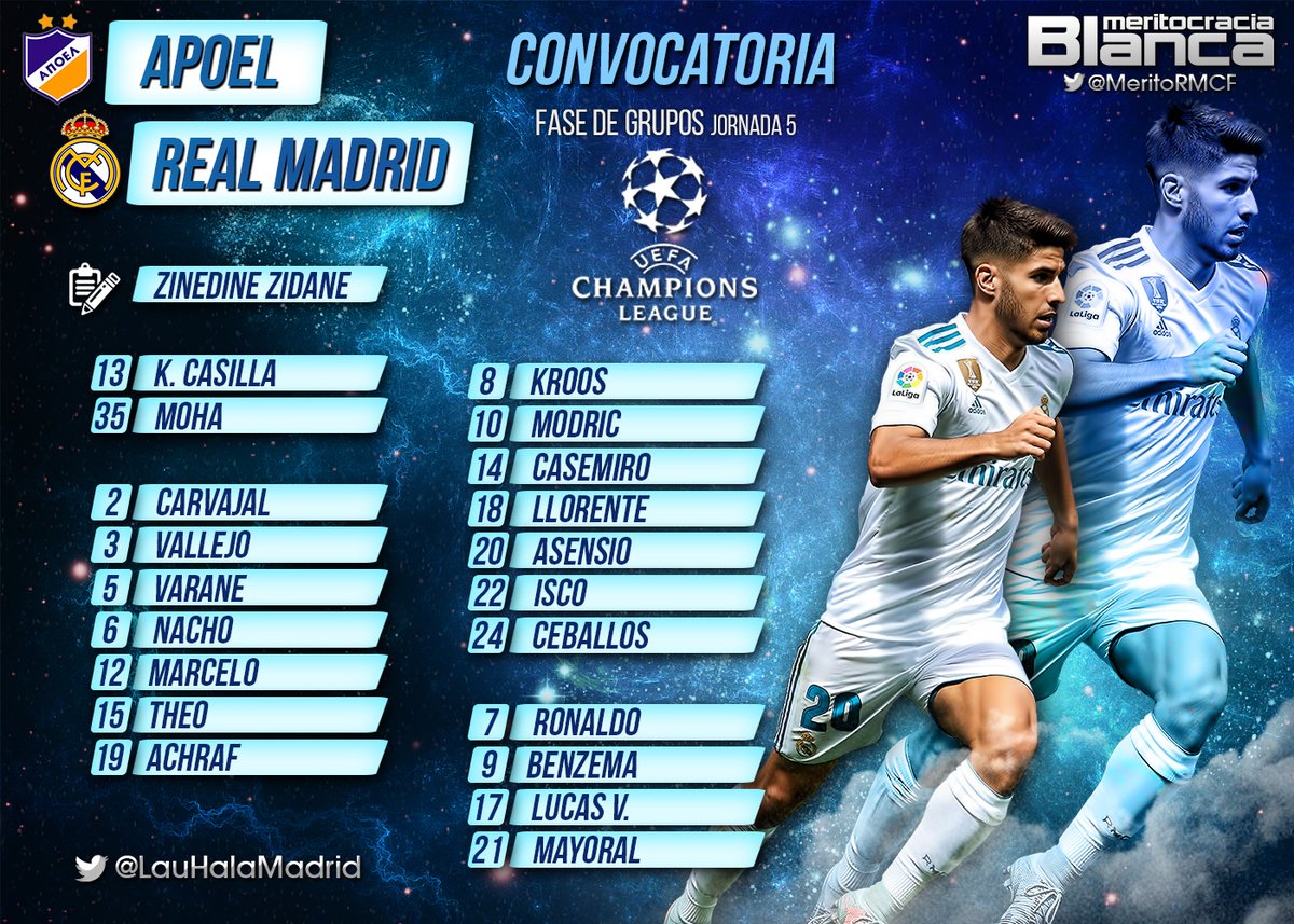 El entrenador del Real Madrid: Zinedine Zidane, ya ha dado la convocatoria Apoel-Real Madrid en la que ha convocado a 20 jugadores para el...